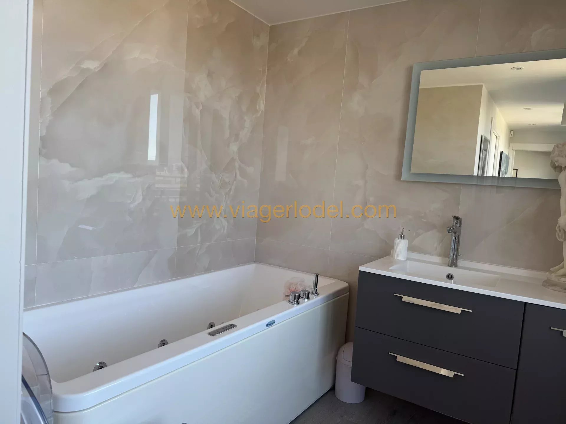 9989 - VENTE AVEC RESERVE DU DROIT D'USAGE ET D'HABITATION - CAP D'ANTIBES (06) - Quartier résidentiel calme, à quelques minutes du bord de mer et des plages, proches tous commerces et infrastructures utiles, dans une résidence de standing gardiennée avec piscine, un très bel APPARTEMENT 3 PIECES traversant de 94,52 m², très lumineux, balcon filant de 41 m2, situé au 5ème et dernier étage - DEUX GARAGES fermés en sous-sol côte à côte + cave à l’arrière + Une seconde CAVE en sous-sol - COMPTANT 655 000 € HAI - SANS RENTE - OCCUPE 2 TETES 82 ans (H) + 85 ans (D) - Valeur Vénale 950 000 euros - TF 2 166 euros dont 478 euros d’OM - Charges 496 euros /mois.