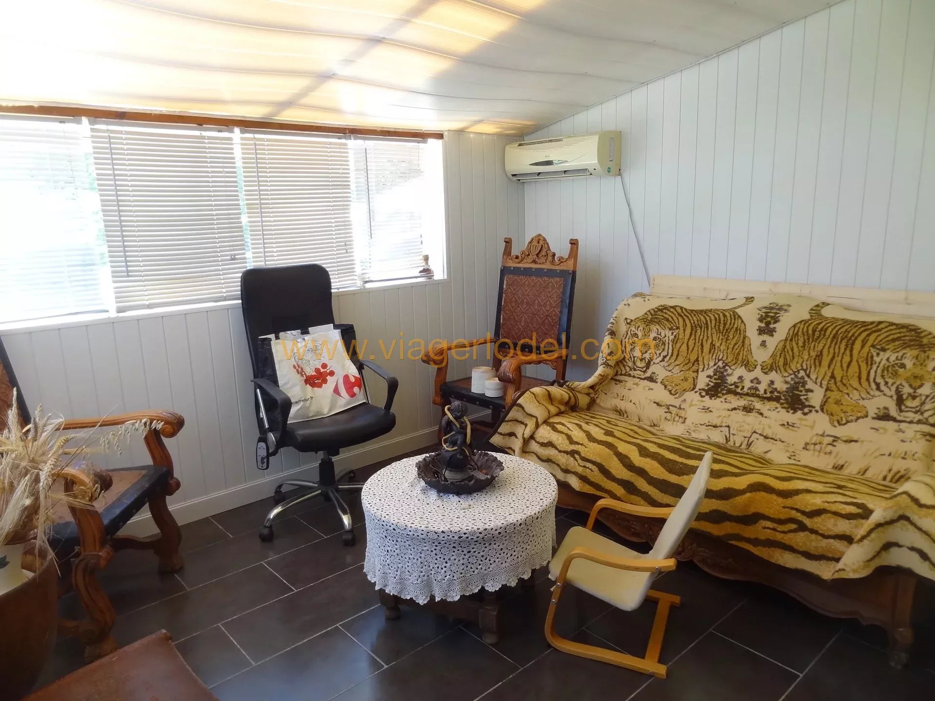 Réf. 9949 - VIAGER OCCUPE - MOLIERES SUR CEZE (30) Description Détails Plan Contact Réf. 9949 - VIAGER OCCUPE - MOLIERES SUR CEZE (30) MAISON 154.65 m²+ Appartement 50 m² + garage - BOUQUET 77 500 euros HAI + rente 785.70 euros/mois indexée - Occ. 2 TETES 77 ans(M) et 76 ans(D) - Valeur Vénale 300 000 euros - TF 1 580 euros dont 340 D'OM. Imprimer cette annonce Résumé Pièces 4 piècesSurface 155 m²Surface totale 12276 m²Chauffage Cheminée, IndividuelEau chaude ChaudièreEtat Bon étatConstruit en 2004Disponibilité Occupé Prestations Air conditionnéDouble vitrageVolets roulants électriquesÉclairage extérieur Pièces Rez-de-chaussée 2 Cuisines 1 Séjour 1 Cellier 1 Dégagement 4 Chambres 2 Salles de douche 2 Toilettes 1 Terrasse 1 Véranda 1er 2 Chambres d'enfants Efficacité énergétique Informations légales Énergie - Consommation conventionnelleEn cours de réalisationÉnergie - Estimation des émissionsEn cours de réalisationTaxe foncière1 580 €Consultez notre barème d'honoraires Pas de procédure en cours